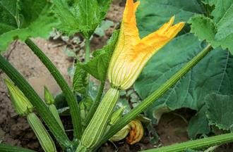 Squash: Summer squash and zucchini are usually bush types; winter squash has a spreading, vining habit. Calabaza is similar, but is a heat- and disease-resistant hard-shelled squash, similar to a butternut or acorn in taste. Chayote is a vine that needs support. All cucurbits have male and and female flowers separated on the plant, and pollination by insects is required for fruit set. Leaf and fruit diseases are fairly common. Winter types store well.